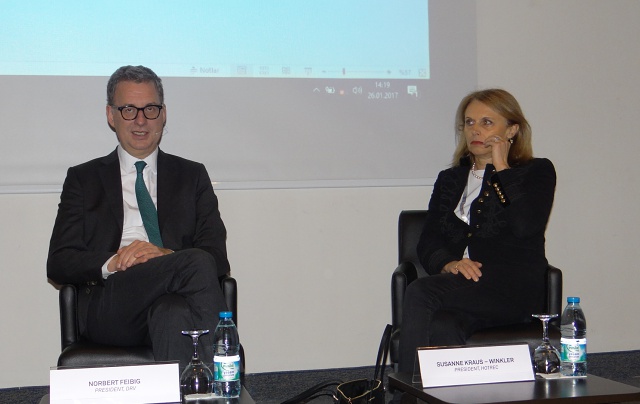 İlk sözü alan Susanne Klaus Winkler, açıklamalarına bünyesinde, Avrupa’daki otel, restoran ve kafe birliklerini bulunduran HOTREC hakkında bilgi vererek başladı. HOTREC’in 29 ülkeden 43 ulusal birliği bünyesinde barındıran bir çatı kuruluş olduğunu kaydeden Winkler, birliğin amacının turizm ve yeme-içme sektörünün Avrupa’ya katkılarını anlatmak ve alandaki zorlukları ve gelişmeleri yakından takip ederek çözüm üretmek olduğunu ifade etti.