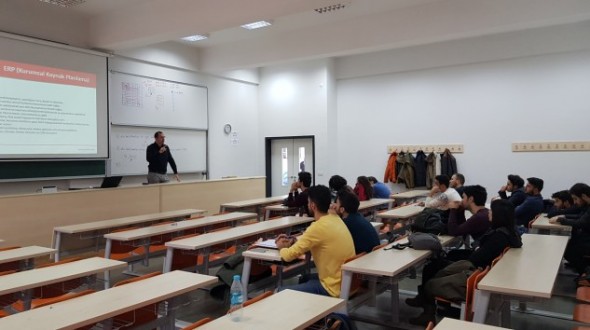Kısa adı YTÜ olan Yıldız Teknik Üniversitesi ve Uyumsoft Bilgi Sistemleri ve Teknolojileri arasında “Eğitim, Öğretim ve Bilimsel Faaliyet İşbirliği Protokolü” bulunuyor. Bu protokol kapsamında Uyum Akademi Yöneticisi Kerim Şahin ve Ar-Ge Sorumlusu Bülent Sarı tarafından, geçtiğimiz günlerde, Bilgisayar Mühendisliği 4. sınıf öğrencilerine ERP semineri verildi.