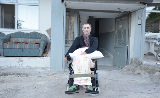 Bedensel Engelliler Sanat Eğitim Merkezi (BESEM) tarafından gönderilen tekerlekli sandalye Ulaş Bulut’a ulaştı.