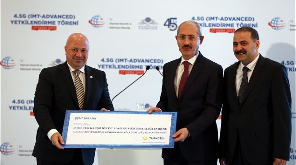 Turkcell’in ödeyeceği toplam 1.62 milyar Euro+KDV’lik tutarın ilk taksitini temsil eden sembolik çeki Ulaştırma, Denizcilik ve Haberleşme Bakanı Feridun Bilgin’e takdim eden Turkcell Genel Müdürü Kaan Terzioğlu “Biz, bu ihale sonucunda yalnızca 4.5G’nin en hızlısı olma hakkını değil, bununla birlikte 5G’ye öncülük etme hakkını kazandık. 4.5G’de en yüksek hızları sunarak, Türkiye’ye cep telefonu ile 1000 Mbps’in üzerinde mobil internet hizmeti sağlayacağız. Kullanım hakkını elde ettiğimiz frekansların değeri, önümüzdeki dönemde çok daha iyi anlaşılacak. 4.5G’de Taşıyıcı Birleştirme Teknolojisi ile önce 3 spektrumu birleştirerek 375 Mbps hıza ulaşacağız ama orta vadede gerçekleşmesini beklediğimiz 4 taşıyıcı teknolojisi, elde ettiğimiz bu frekanslarla bizi 5G’nin de lideri yapacak. Türkiye, cep telefonunda 1000 Mbps’yi ilk kez Turkcell ile görecek. Bu, ‘kablosuz fiber’ hızı demek. Hem bireysel hem de kurumsal kullanımda müthiş fark olacak. Bu insana fayda ve ekonomiye kazanç sağlayacak dev bir adım atılması demek” dedi.